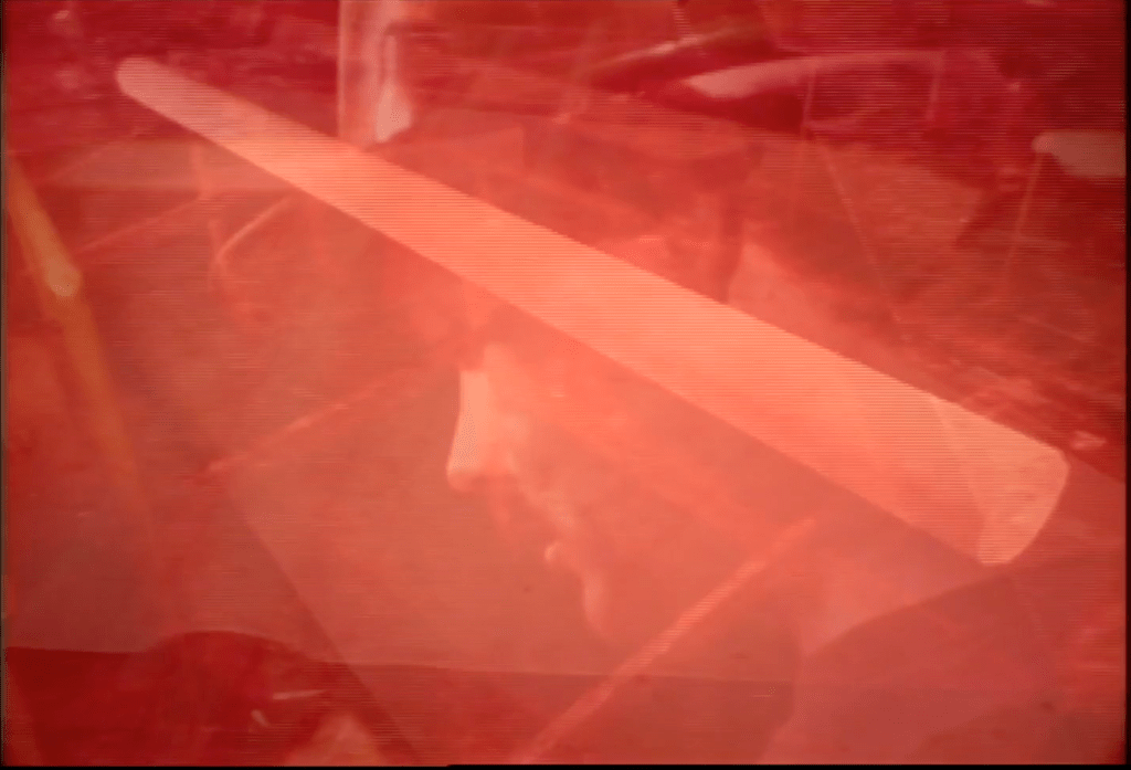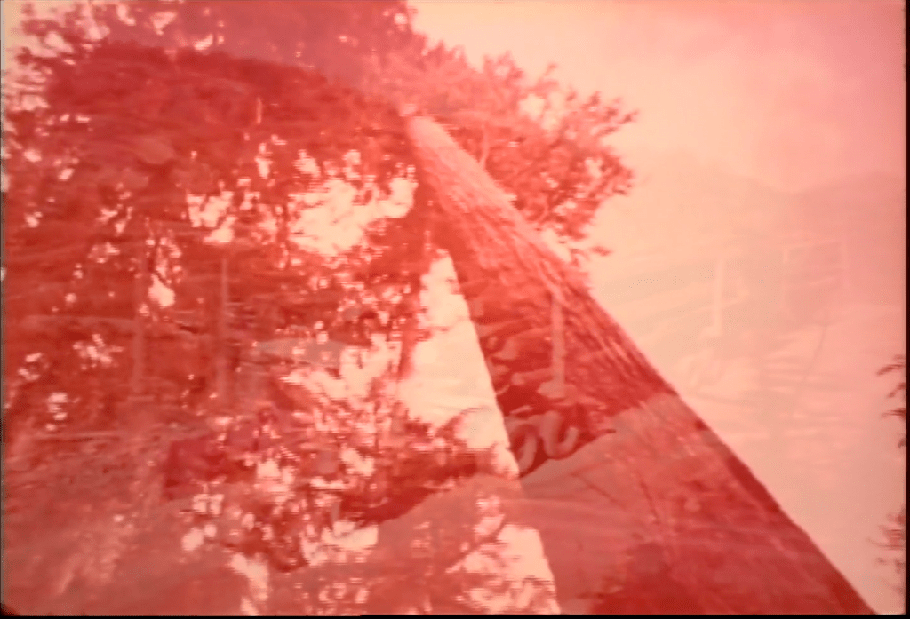 It is a re-edit of Kelly Duncan’s 1978 film To Build a Better World. The story told by the original film suggests that British Columbia’s forests and plywood industry would have transformative and enduring effects across domestic and industrial worlds. The film promotes capitalist extractivist economies based on timber resources. Following the logic of progress found in the film, this future promises efficient and strong building practices and forest management to be carried out in standardized and predictable ways. In the summer of 2018, while skies over British Columbia glowed magenta and the air was choked with smoke from burning forests, we reworked To Build a Better World to create the digital film loop that slowly layers onto itself until all form is obscured. Our reworking of the magenta film was meant to evoke the extent to which utopian views of natural and industrial worlds have not been realized in the present.[2]