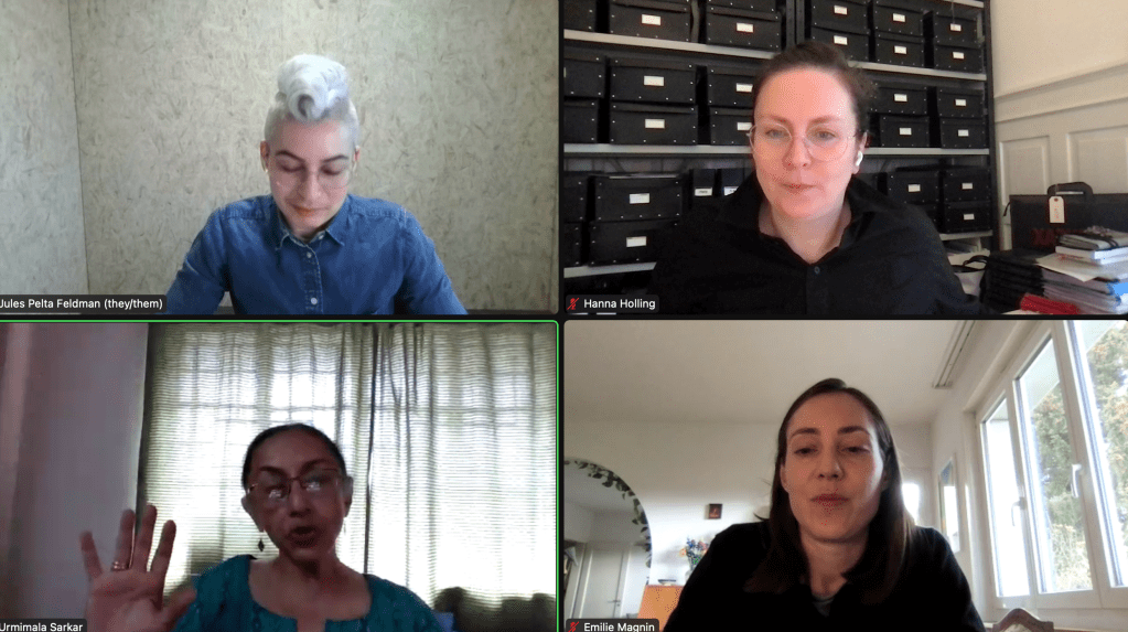Curious about how performance and dance conservation is practiced in India and what can be learned from Indian dance research and dance as research, the team of Performance: Conservation, Materiality, Knowledge has recently met with Urmimala Sarkar Munsi, who is an expert in social anthropology, dance studies and choreography. As a Professor at the School of Arts and Aesthetics in Jawaharlal Nehru University, New Delhi, India, Professor Sarkar teaches and researches various aspects of dance, including its potential to aid survivors of sexual violence. Her work centers on the intersection of gender, sexuality and dance. As a dancer, Urmimala has performed extensively both in India and abroad. Her research focuses on the politics of performance and its social issues. She has conducted groundbreaking research on dance and affect, cultural unlearning, and auto-ethnographic approaches in dance.