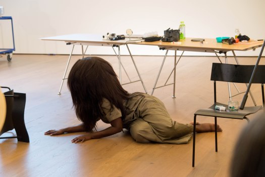 Sanvee—who had to be present over Zoom due to an injury—explained that she is interested in bringing to life things that are inanimate, whether buildings or people from the past. She also talked about the demands of taking on other people’s work, of trying to do the physically demanding things they have done with her different body and different set of skills. Sanvee spoke about “integration,” which has been a theme in her work in multiple ways. As a child immigrant to Switzerland and a Black woman from Togo, Sanvee has had to deal with what it means to “integrate” since she was very young. She said, “You have to in a way forget who you were in order to make a new you.” I find this very interesting in light of her works, notably La performance des performances, that reperform/reinterpret others’ performance pieces: in that piece, she very plainly does not forget who she was, but rather manages to integrate her own identity (and ideas, interests, body…) with the works of others. In this sense, Sanvee’s practice of what we might call archival performance offers a powerful model for reconsidering integration as innovation.