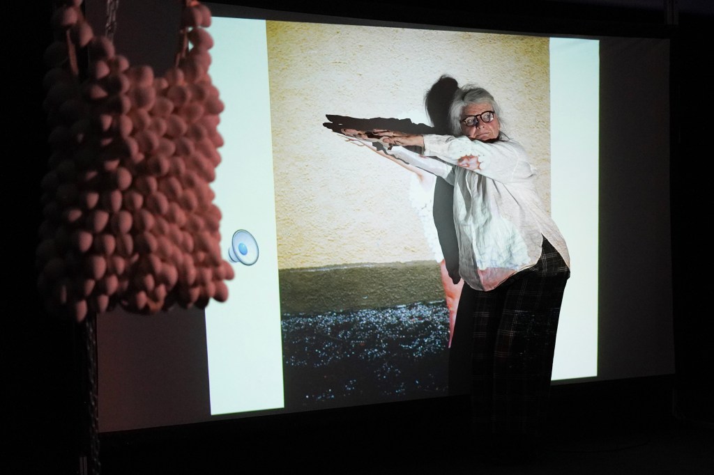 Pascale Grau understands performance as a practice of remembering, and sees the body as a storehouse of cultural memories. Born in Switzerland in 1960, she has made a powerful mark on the Swiss art scene and beyond through her performances, curation, scholarship, and teaching. She received a degree in modern dance at Heiner Carling’s HC Studio in Bern before studying art at the Hamburg University of Fine Arts and art theory at Zurich University of the Arts ZHdK. As a performer, Grau uses her own body to skewer the history of art, such as in 2019’s me as a fountain, which playfully subverts male artists’ claim to embody creativity: “From me spurts life, never-ending inspiration.” In Ovation (2005), which exists as both a live performance and a video, Grau performs a series of operatic bows towards the audience, only concluding the performance once they have begun to applaud her. In addition to various teaching and curatorial engagements, Grau has also championed the cause of performance documentation, working to ensure that performance art lives on through video, photography, interviews, and other means. From 2010–2012, she led the groundbreaking research project archiv performativ at Zurich University of the Arts.