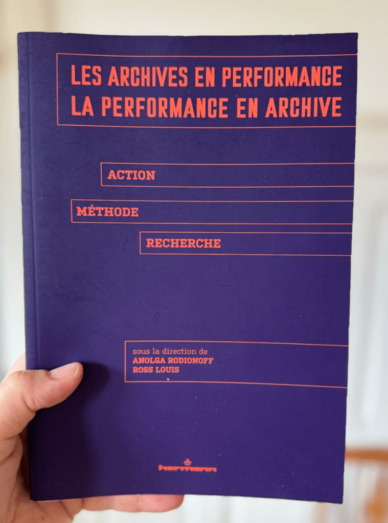 I am excited to share that the French translation of Rebecca Schneider and my essay “Not, Yet: When Our Art Is in Our Hands, ” has been published in Les archives en performance, la performance en archive: Action, méthode, recherche, edited by Ross Luis and Anolga Rodionoff (Paris, Éditions Hermann, 2025).