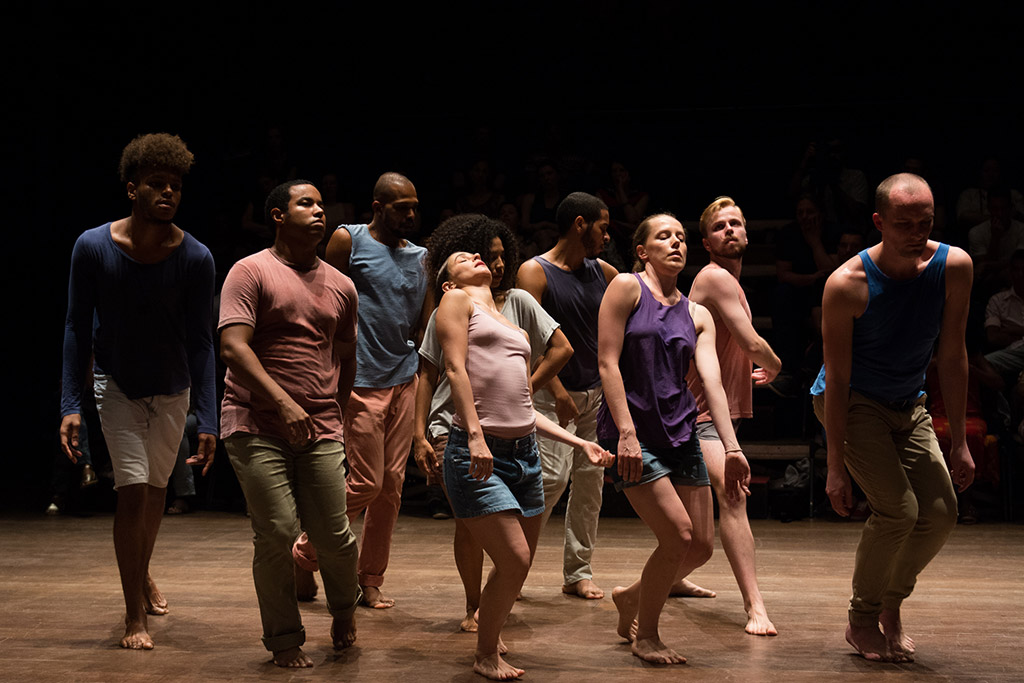 The Yanka Rudzka Project. Leavening. Photograph Mallu Silva. Courtesy Joanna Lesnierowska. From the left: Jônatas Raine, Uandson Glauber, Anderson Danttas, Sinha Guimaraes, Korina Kordova, Neemias Santana ,Agnieszka Kryst, Paweł Sakowicz and Janusz Orlik.
